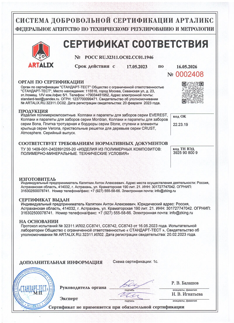 Сертификаты соответствия ZKING для Кандалакши